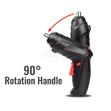 90° Rotation Handle-The 90° rotation handle of the cordless screwdriver allows for versatile maneuverability in tight spaces, making it easy to access difficult angles while working.